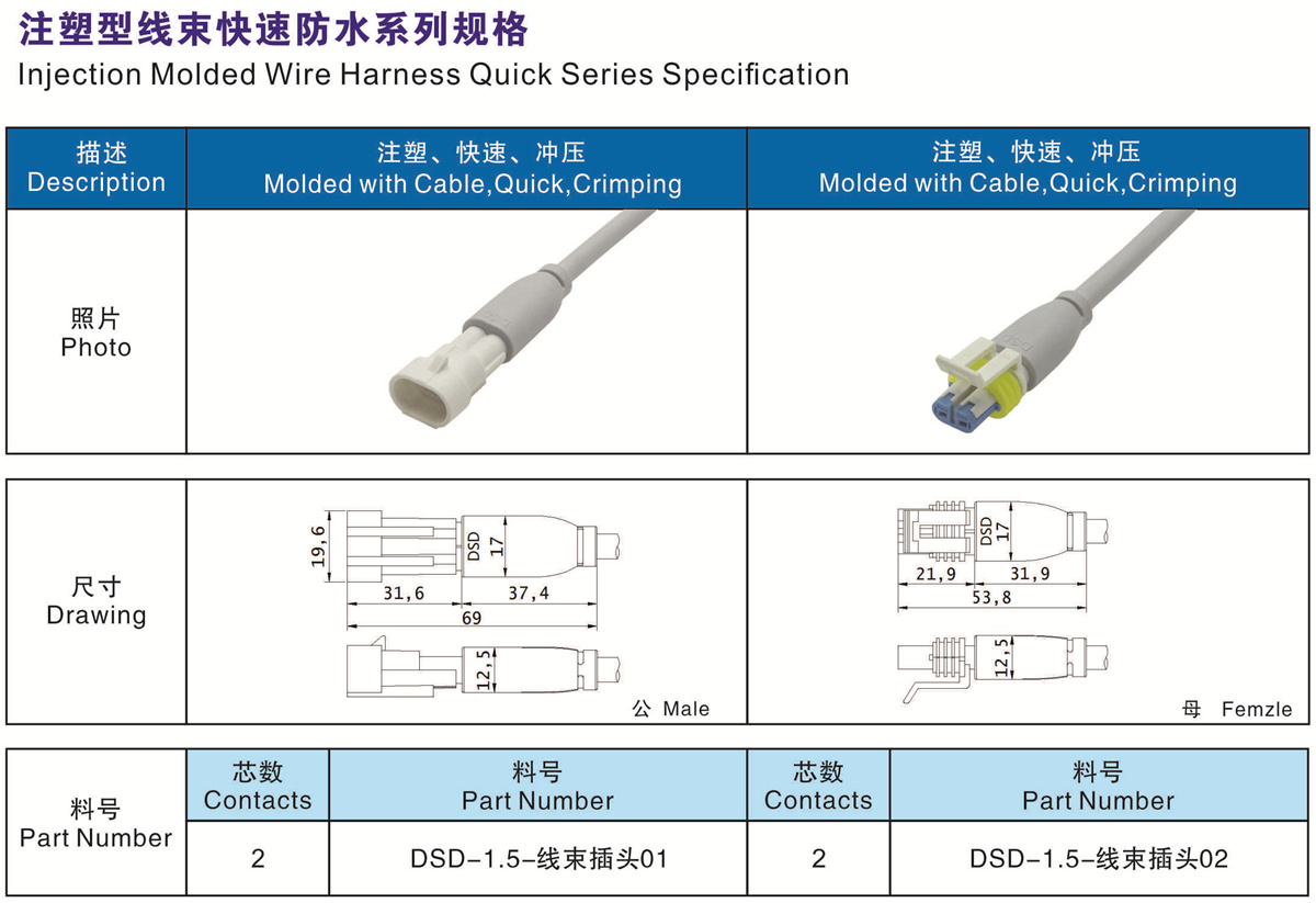 注塑型線束快速防水系列