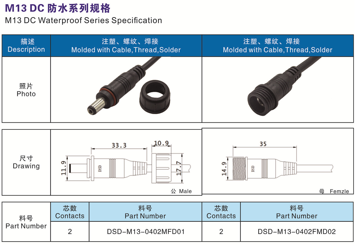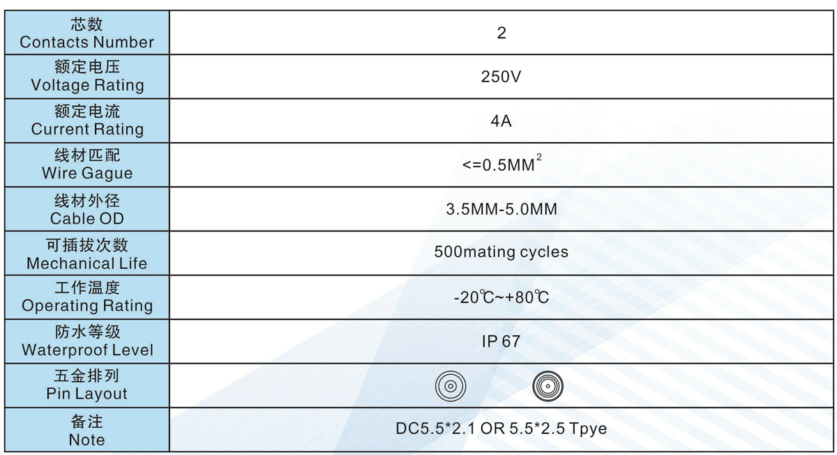 芯數(Contacts Number): 2 芯