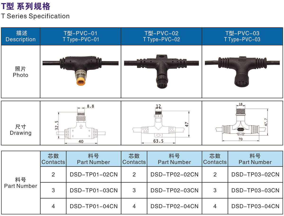 料號(Part Number) : 2芯(DSD-TP01-02CN) 3芯(DSD-TP01-03CN) 4芯(DSD-TP01-04CN)